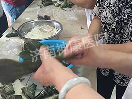 在大饱口福的同时还能亲自体验一把包粽子的乐趣,让患者在医院也能感受端午节的温馨融洽。
